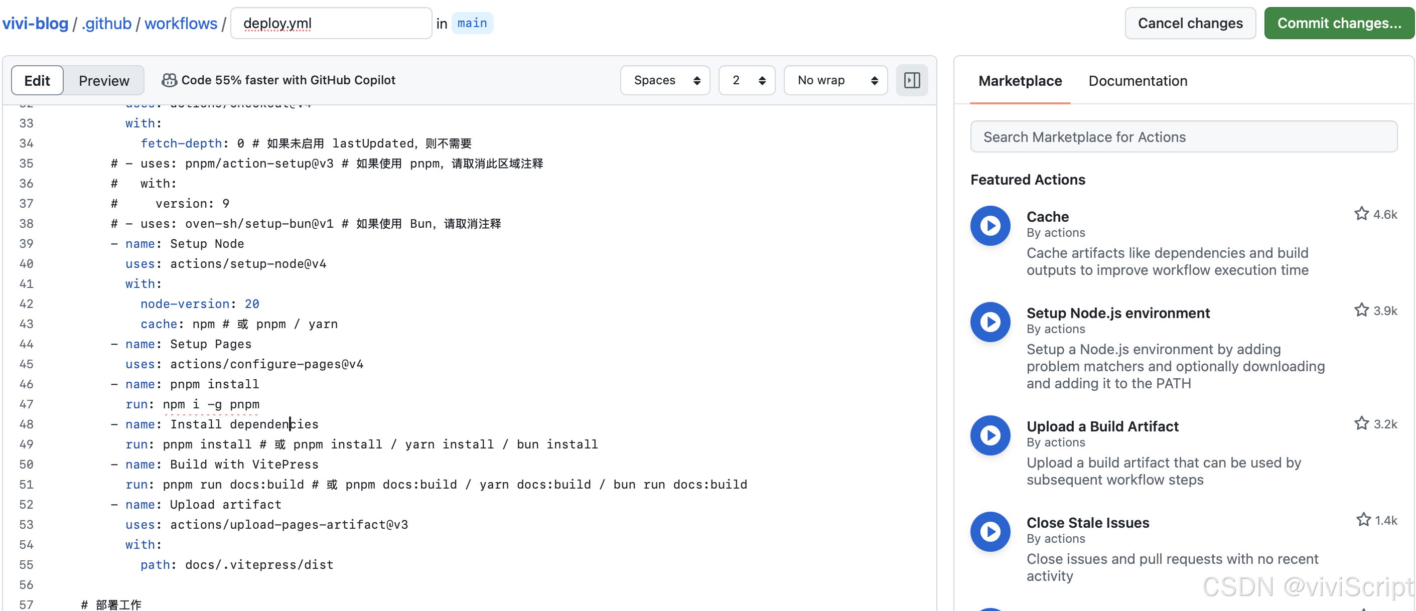 copy官方提供的配置文件到github中,修改名称deploy.yml